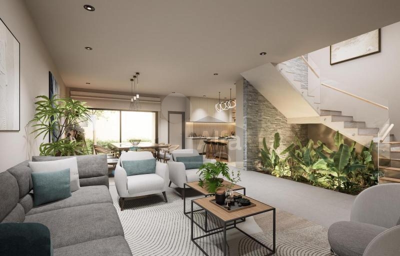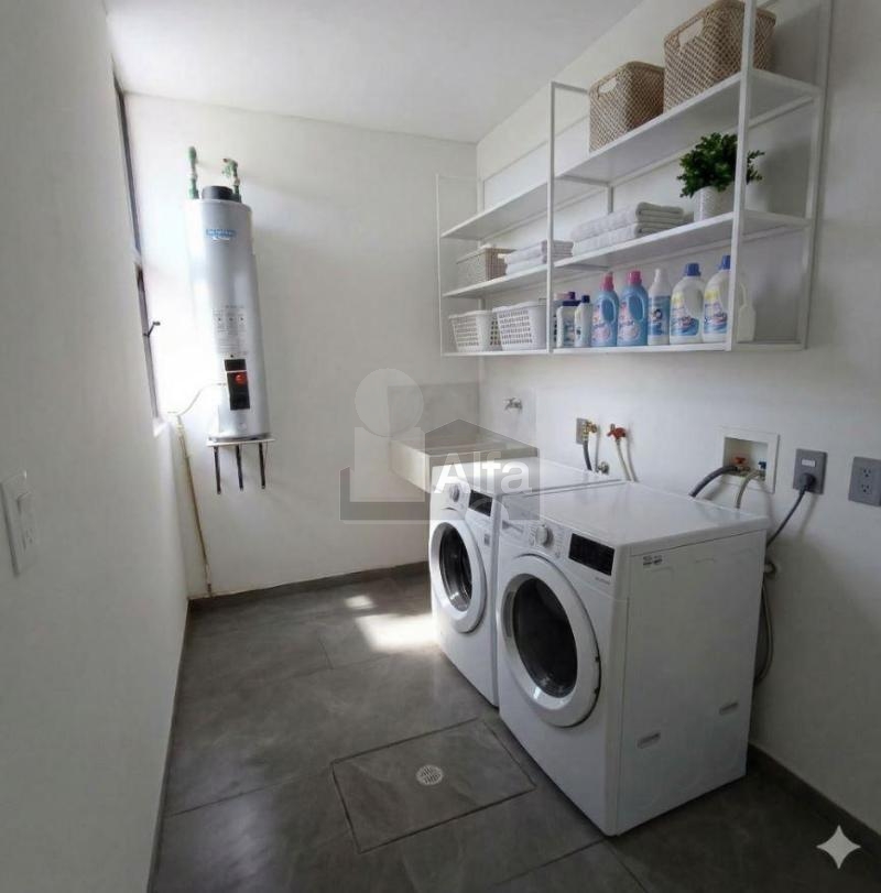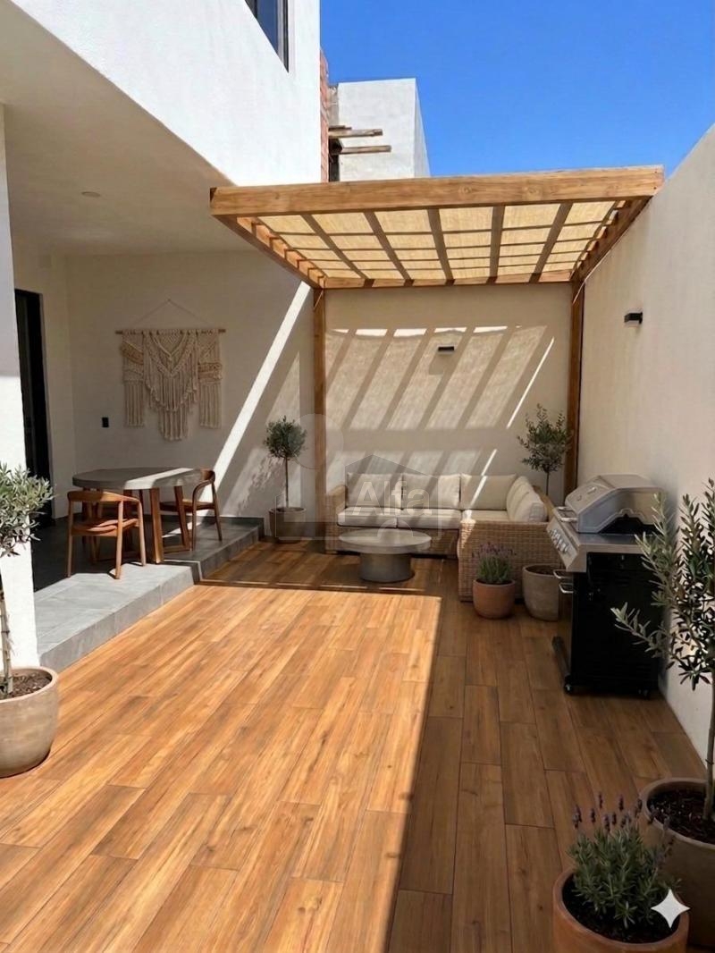 Planta baja: sala, comedor, cocina integral, baño de visitas, cuarto de lavado, terraza, jardín y cochera para 2 autos.