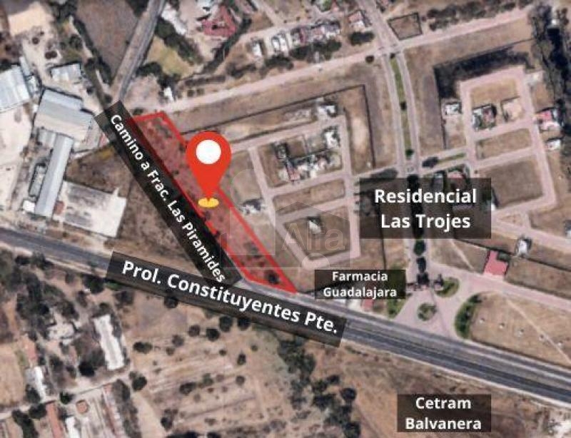 Este terreno de 7,153 m² se encuentra sobre Prolongación Constituyentes Poniente, a unos metros de Residencial Las Trojes y muy cerca del Parque Industrial Balvanera, en un corredor con alto flujo vehicular y gran conectividad logística.